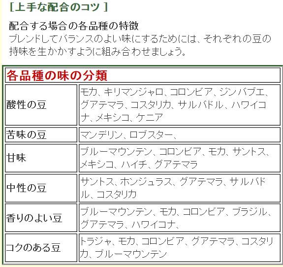 香りの甘さが軽快で酸味・コク、苦みともに軽くバランスが良い。安価でありブレンドのベースとして多く使われる。